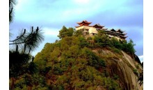 之后游覽【云峰山】云峰山腳,村落密布,竹樹茂密。路旁菜園,多用竹籬圍柵,村前秧田水滿,如一片片明鏡鑲嵌在綠野之中,頗具傣寨水鄉風味,沿山腳行約三四里云峰奇景便呈現在眼前:左面的山頭,巨石累累,山頂有一石舌伸出,狀如鸚鵡,欲飛撲而下;正前方,云峰陡起,如筆挺立,絕頂寺觀雄踞,寺周猶如仙人掌般的巨石拱衛,使寺觀儼如古代堅固的城堡,路由狹窄的山脊而上,險奇陡峻,兩旁為深淵,翠濤沉霧,莫窮底細,探頭俯視,令人心驚膽寒,仰望"云梯懸絕壁,石脊垂蒼龍,縹緲飛樓觀,疑與上界通";