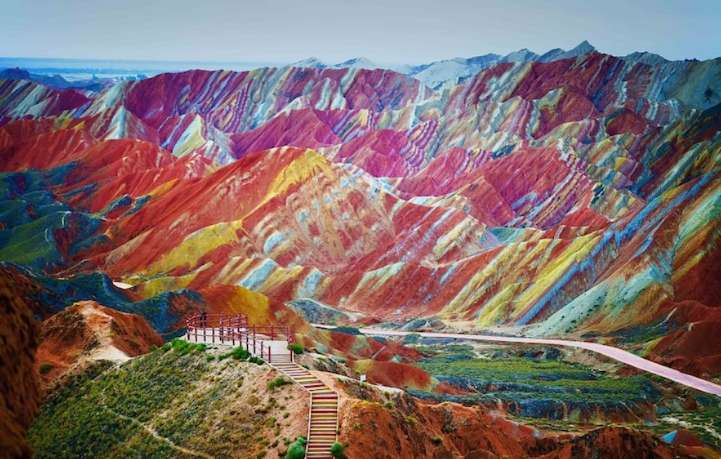 后乘車赴【七彩丹霞】,位于張掖市臨澤肅南縣境內,面積約510多平方公里,其中彩色丘陵面積約40平方公里;