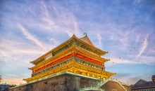 西安市的城市客廳-廣場(陜西歷史博物館—鐘鼓樓 行程5公里 大約行駛20分鐘),外觀鐘樓和鼓樓的雄偉氣勢(參觀1小時)明城墻,后回民一條街(參觀3小時)自費平常特色小吃;