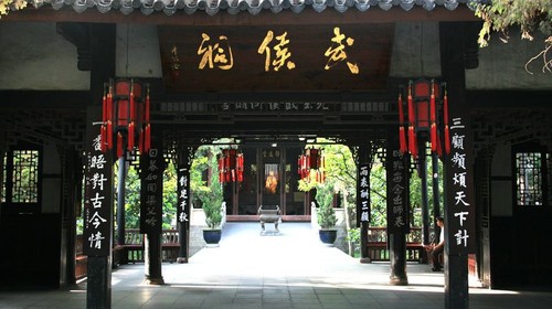 杜甫還寫了一首詩,說的就是武侯祠“丞相祠堂何處尋,錦官城外柏森森”(唐代杜甫《蜀相》);