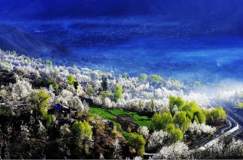 4、前往“中國雪梨之鄉”美譽的金川,萬物復蘇的初春三月,正值金川成千上萬棵梨樹花期,雪白色的梨花競相開放,一片片、一層層的鋪散開來,漫山遍野的白色花海中夾雜零星新綠,空氣中氤氳著梨花清香,眼是天堂,身亦是天堂。