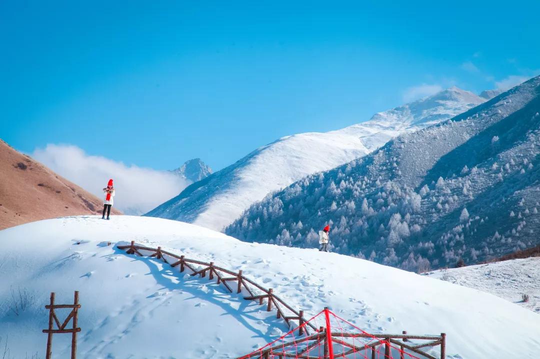 有“四姑娘山后花園”美譽的畢棚溝(不含景區觀光車60元/人-上行游客中心-龍王海/下行娜姆湖酒店-游客中心),溝內有原始森林、絢麗多彩的植被、雪山溫泉,景觀豐富。冬季在這里我們可以看到覆滿白雪的四姑娘山,遠眺藍天高山染白,奇特的萬年冰川,斑駁著枯黃與灰綠的山林;沿兩旁塞滿了楓樹、槭樹、鵝掌松、落葉松的小路踱步,冬天雖然已沒有了紅葉,但枯黃的枝丫卻平添了一番肅殺,也別有風味。錯過了畢棚溝金秋的層林盡染沒關系,冬季畢棚溝的群山迭起霧氣繚繞會告訴你,冬天也值得。