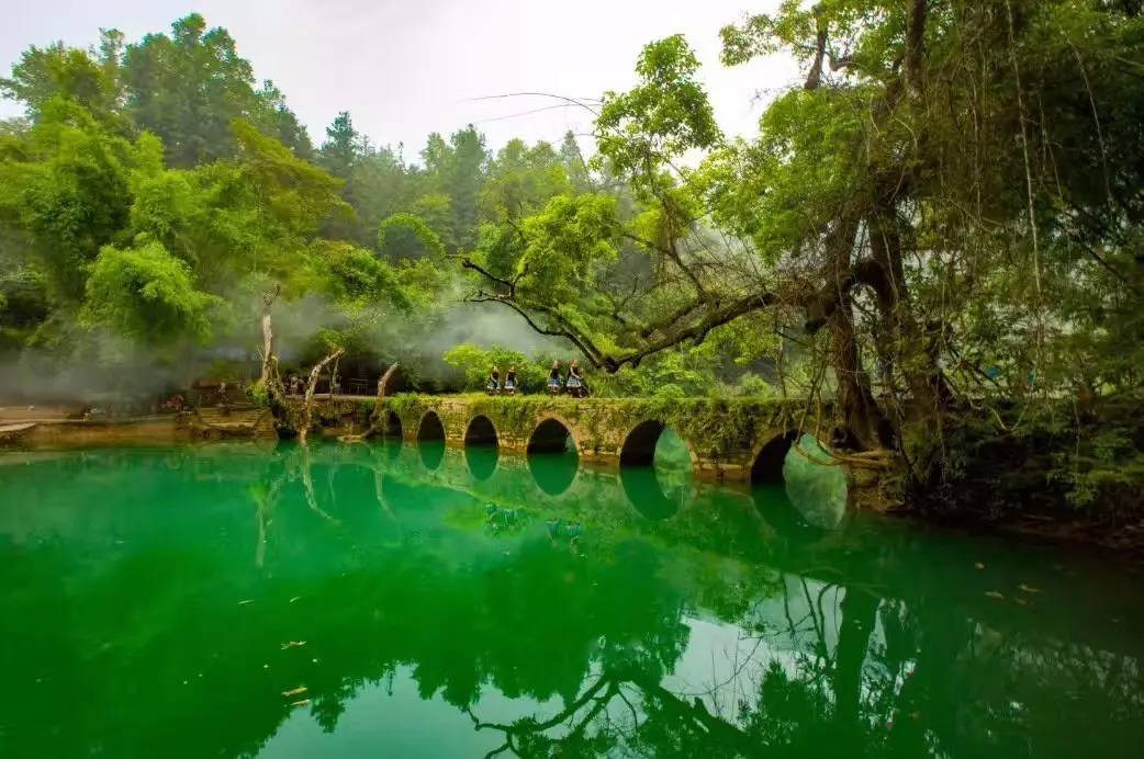 早餐之后乘車前往世界遺產地“地球上的綠寶石”—【小七孔景區】游覽時間:不少于3小時(需自理電瓶車40元,景區保險10元,)小七孔景區因一座建造于道光15年間(1836年)的小七孔石橋而得名。景區被稱之為“超級盆景”,集山、水、洞、林、湖、瀑布等為一體,在長不到2公里的峽谷內,起迭著68級瀑布,順贄而下,奔瀉而去。拉雅瀑布精巧醉人,水珠飛濺;而長不到600米之水上森林,樹根盤在錯石上,清澈的水流沖刷著青石,行走于其中,若身臨瓊瑤仙池(注:不含鴛鴦湖劃船費30元/人;屬景區內不必須自費項目)。乍聽名字,就令人神往, 蕩小舟于湖上,心曠神怡, 流連忘返。