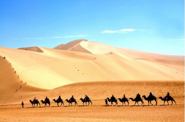最后抵達【鳴沙山月牙泉,游覽約4h】,月牙泉處于鳴沙山環抱之中,其形酷似一彎新月而得名。鳴沙山為流沙積成,因沙動成響而得名,分紅、黃、綠、白、黑五色。1994年它被定為國家重點風景名勝區,榮獲“中國最美的五大沙漠之一”等榮譽稱號?!吧揭造`而故鳴,水以神而益秀”,能在沙漠之中流淌出這一灣清澈的泉水,實在是天工造化。鳴沙山、月牙泉古往今來以“山泉共處,沙水共生”的奇妙景觀著稱于世,被譽為“塞外風光之一絕”。