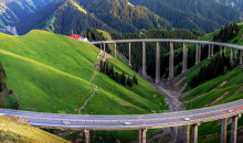 果子溝大橋在設計施工中秉承"以最小限度破壞、最大限度的恢復"的環保理念,在克服地質災害頻發影響通行的同時,邊施工邊進行環?;謴凸ぷ鳌=ǔ傻拇髽驑蛏砼c果子溝的美景渾然一體,將為果子溝國家級風景區再添一道美麗風景線。