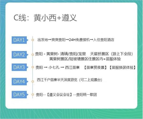 全天——交通【預(yù)訂須知】:報名費(fèi)用已含鏈接訂單顯示出發(fā)城市到貴陽動車(或火車)費(fèi)用(二等座);1.下單時鏈接出發(fā)城市可選擇貴陽出發(fā),出發(fā)城市顯示貴陽后,費(fèi)用自動減去動車費(fèi)用;【特別說明】:【貴陽來程動車已含。旅行社聯(lián)系您后再出票,車次以有票時間為準(zhǔn),盡量安排符合您的車次,如沒有合適您的車次,系統(tǒng)將隨機(jī)出票,車次不定。如果您需要自選時間,可選擇在下單后退費(fèi)。您可自行在火車票官網(wǎng)購票,選擇您滿意的時間。如車票售罄,系統(tǒng)將退車票費(fèi)用給您,然后請自行前往貴陽】。