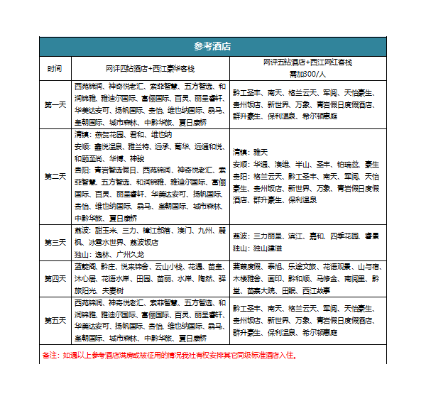 1、不含景區小交通黃果樹110元/人,西江30元/人,小七孔50元/人、天眼擺渡車50元/人費用需自理。