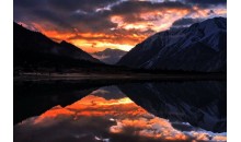 (2)從洛絨牛場到牛奶海、五色海有兩種方式,一種是步行走馬道上去,往返需要6-7個小時;一種是騎馬上去,往返需要3個小時(馬費自理300元/匹),不能購買單程馬票。一早從稻城出發,前往桑堆的途中可以拍攝紅草地(該景點為季節性景觀,只有在每年的九月中旬到十一月上旬才能看到紅草,此處有當地人收費,需自理),在秋天的時候,配合上后面泛黃的樺樹,倒映在水塘中,是非常漂亮的一道美景。之后再次翻越海子山自然保護區(平均海拔4500多米),在理塘休息后,下午出發前往巴塘迎接下一個挑戰,今天將正式進入西藏界。