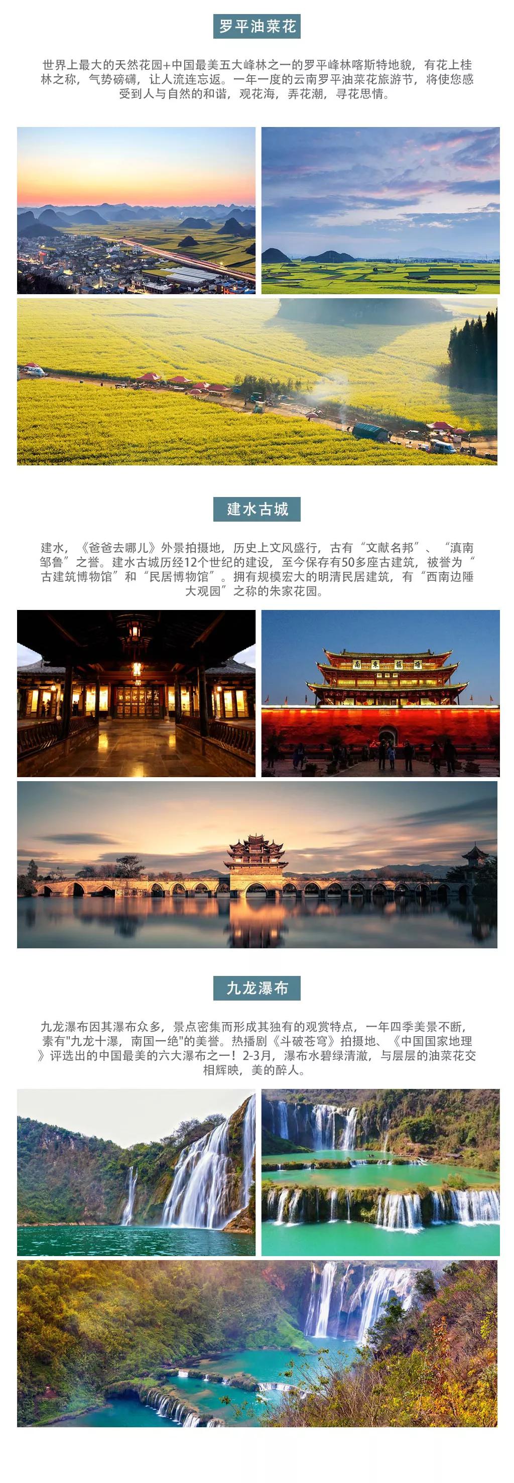 當日行程:早起出發(fā)前往熱門影視《斗破蒼穹》拍攝地——羅平縣,到達羅平縣城后直接前往觀賞中國六大最美瀑布之一的【九龍瀑布】,九龍瀑布群因其瀑布眾多,景點密集而形成其獨有的觀賞特點,一年四季美景不斷,素有"九龍十瀑,南國一絕"的美譽,在約兩公里長的河道上有十級瀑布,九龍十瀑之間,以淺灘或深潭相連,或雄偉、或險峻、或秀美、或舒緩,千姿百態(tài)、異彩紛呈,裂帛般的白瀑,綠玉般的流水,層層疊疊階梯狀的水臺繞著水瀑蜿蜓而下,從不同的角度審視每次都能發(fā)現(xiàn)新的一層驚喜,邊登高看景邊拍照,渴了買根當?shù)爻雒乃}卜,汁多美味,清甜潤喉,一路到九龍瀑頂端,微風拂過,看那一波又一波的金色油菜花浪潮;