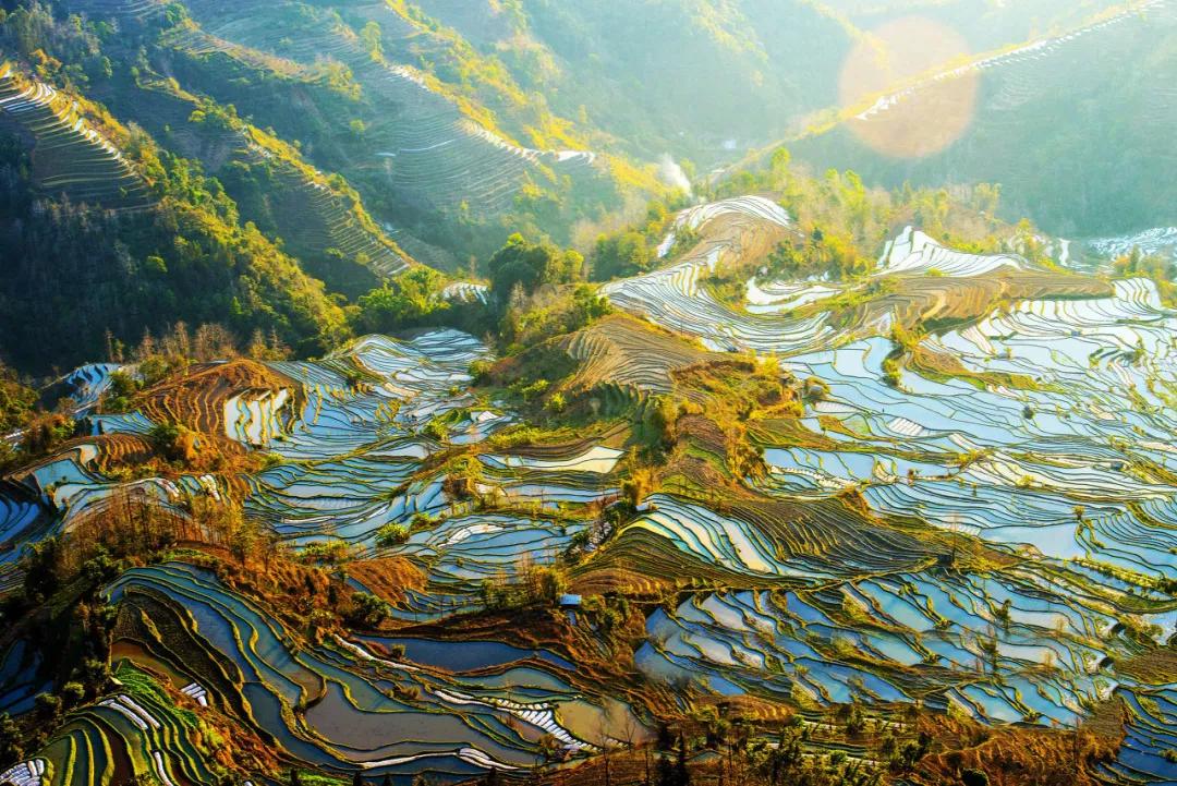 溫馨提示:今天行程非常豐富,有日出日落也有徒步,大家需要穿上適宜走路的寬松鞋子,隨身水壺、零食、早晚厚一點的衣服需要帶好;箐口梯田時有穿有少數(shù)民族服裝的孩子,大家可以提前準備好零錢或糖果,以便拍攝孩子時獎勵答謝。