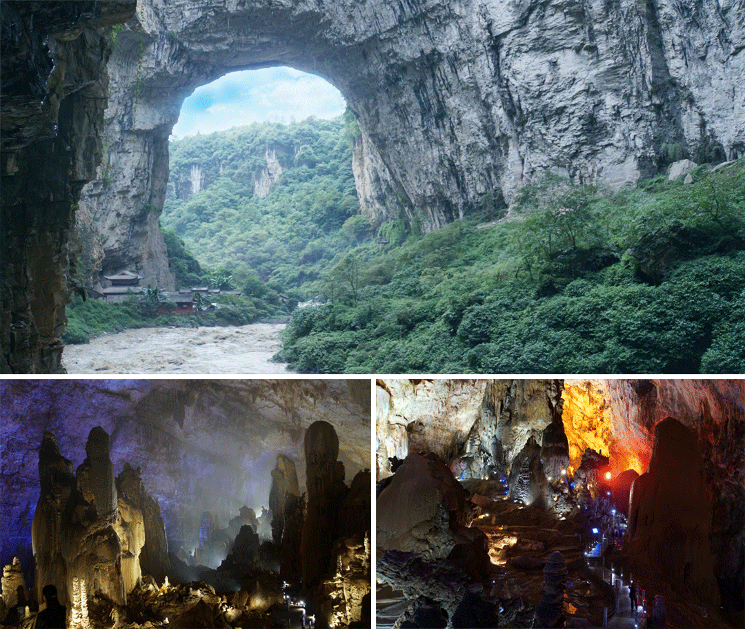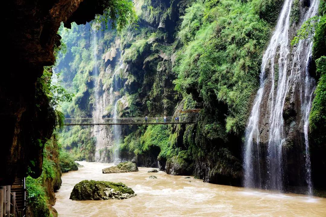 下午,接著游覽距織金洞僅2公里的【織金大峽谷】。峽谷內有保護完好的峽谷、天窗、天坑、暗河、絕壁等地質遺跡,特別是高大的天生橋更是一絕,“水上水、洞上洞、橋上橋、天外天”等景觀被地質學家稱為“世界一流的喀斯特景觀”,可沿懸空棧道或是乘船游覽。