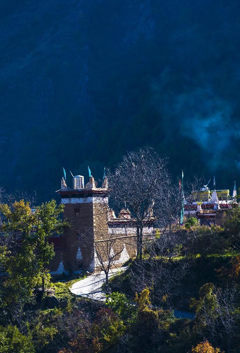 雙橋溝游覽結束后,我們前往到甘孜藏族自治州東部的丹巴縣【甲居藏寨】,2005年《中國國家地理》雜志組織的選美中國活動中,以甲居藏寨為代表的“丹巴藏寨”被評為“中國最美的六大鄉村古鎮”之首。這是最具嘉絨藏族特色的村寨,“甲居”藏語是百戶人家之意,藏寨建筑運用紅白黑色,依山而建,從大金河谷層層向上攀緣,一直伸延到卡帕瑪群峰腳下,整個山寨依著起伏的山勢迤邐連綿,在相對高差近千米的山坡上,一幢幢藏式樓房灑落在綠樹叢中,配上藍天白云,金黃的玉米,滿樹果子,景色非常壯觀。