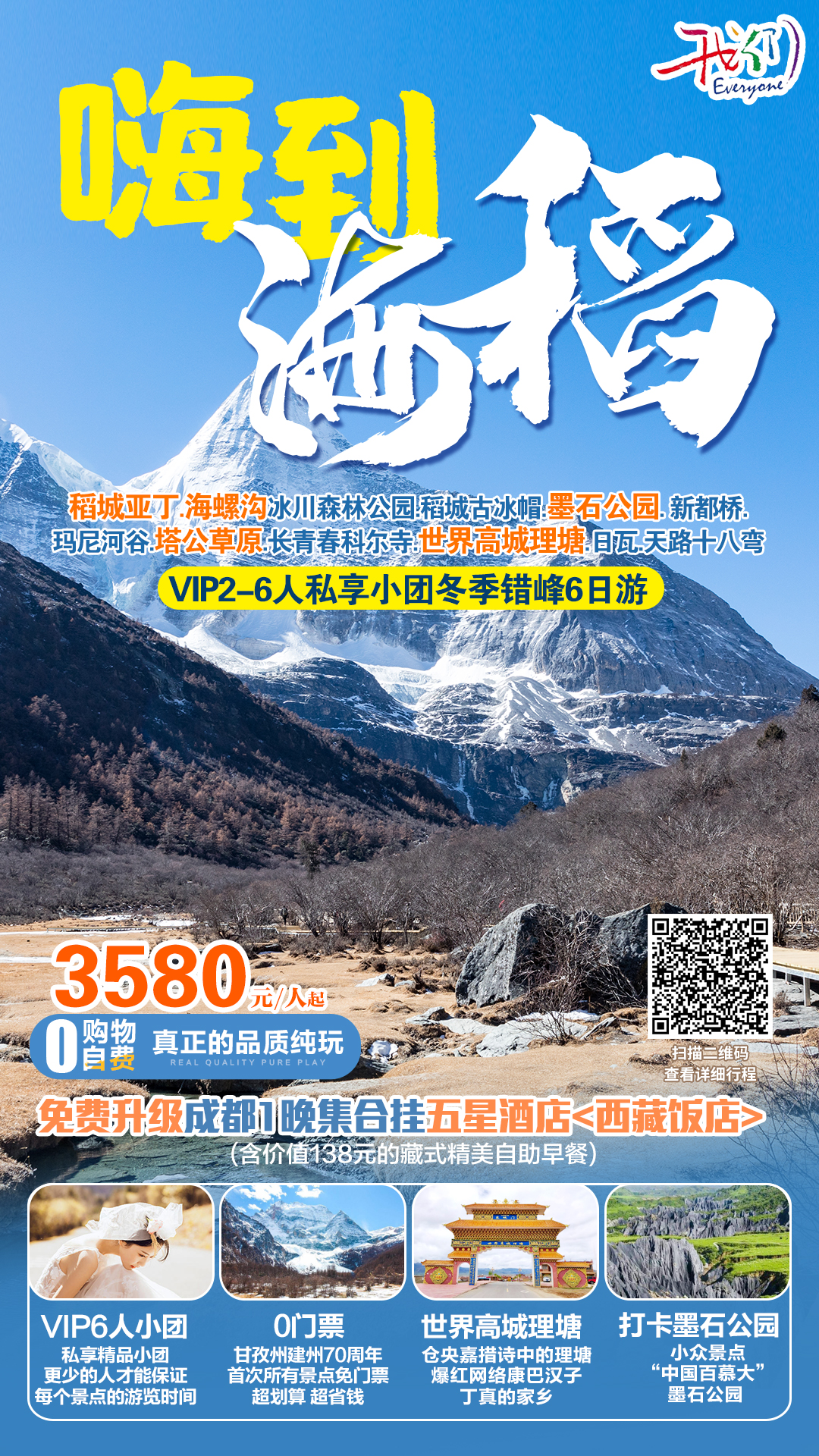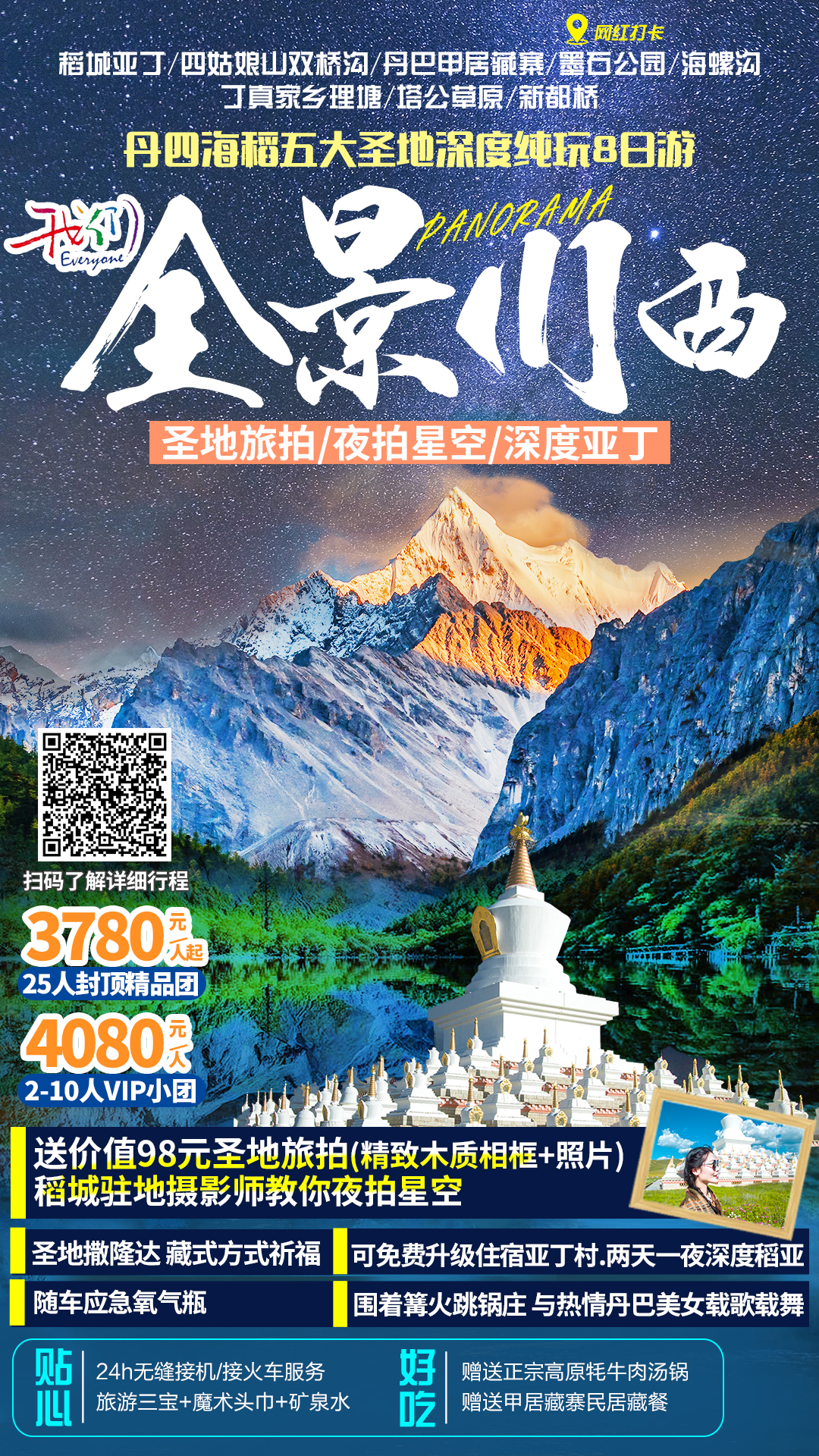 7晚8天!稻城亞丁、四姑娘山、甲居藏寨、墨石公園、海螺溝、丁真家鄉理塘、圣地旅拍、夜拍星空、二進亞丁、五大圣地