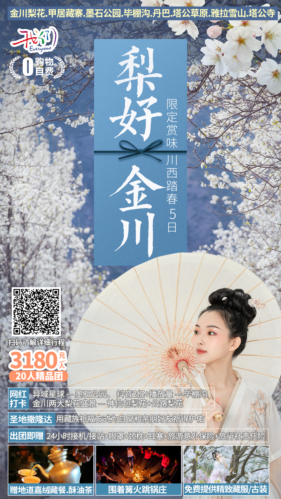 川西限定踏春 4晚5天!金川梨花、甲居藏寨、墨石公園、畢棚溝、丹巴、塔公草原、雅拉雪山、塔公