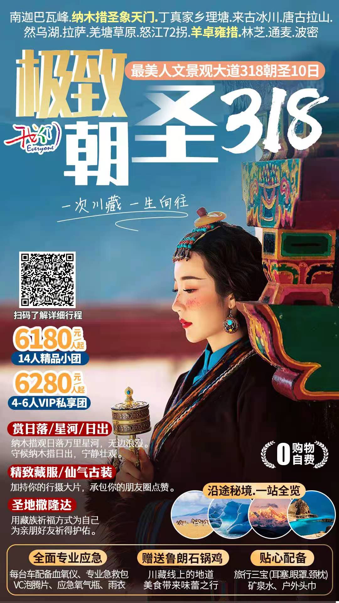 南迦巴瓦.納木措圣象天門.羊卓雍措.丁真家鄉理塘.來古冰川.然烏湖.羌塘草原.怒江72拐 318朝圣9晚10天