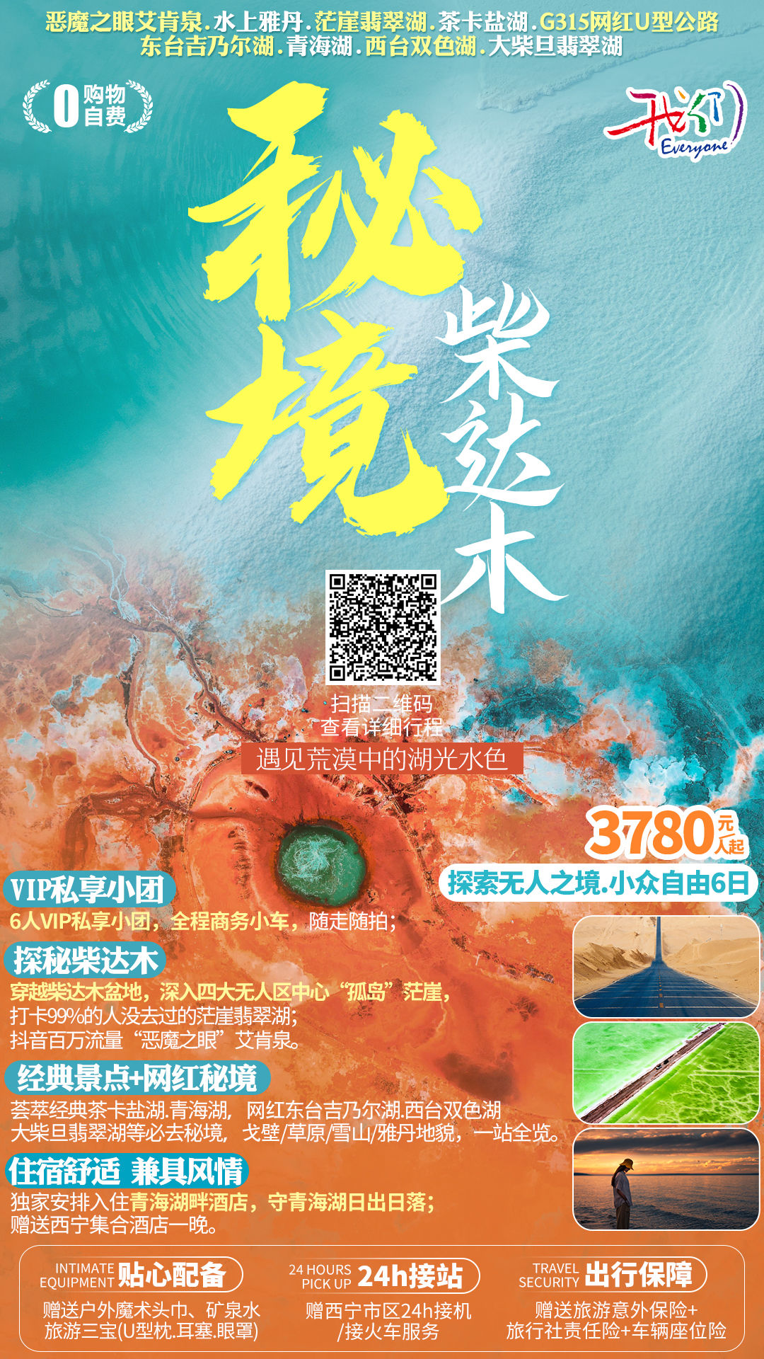 艾肯泉.水上雅丹.茶卡鹽湖.大柴旦翡翠湖.茫崖翡翠湖.東臺吉乃爾湖.西臺雙色湖.青海湖.G315U型公路5晚6天!