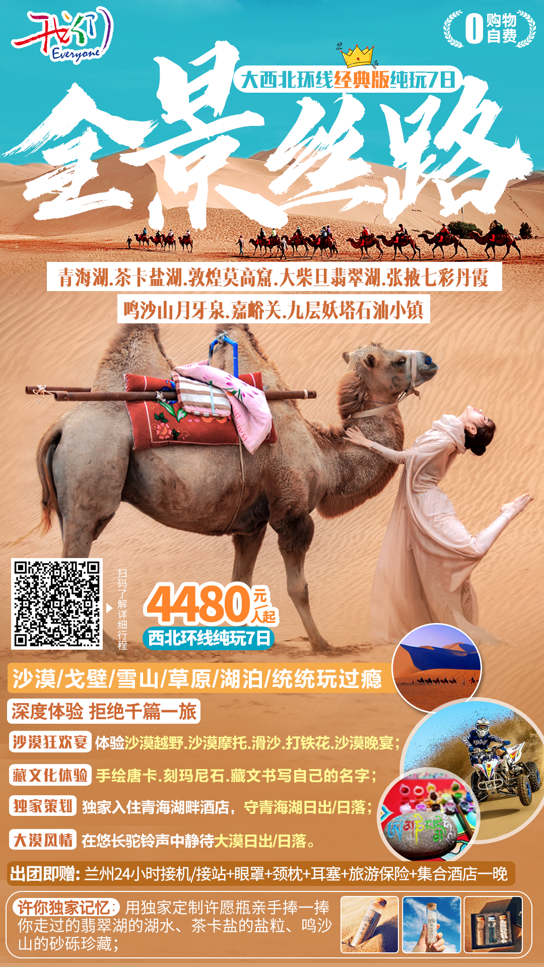 青海湖.茶卡鹽湖.莫高窟.大柴旦翡翠湖.張掖七彩丹霞.鳴沙山月牙泉.嘉峪關.九層妖塔石油小鎮 經典絲路6晚7天!