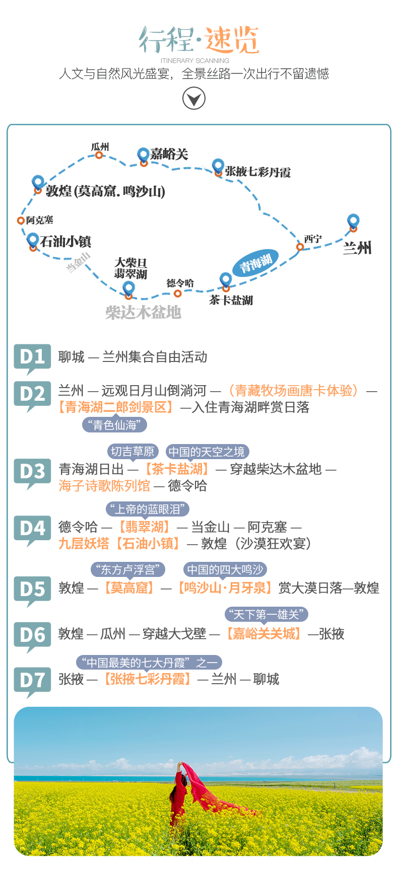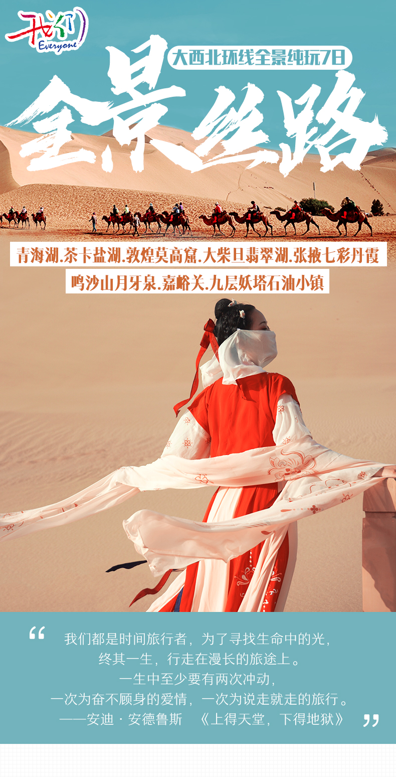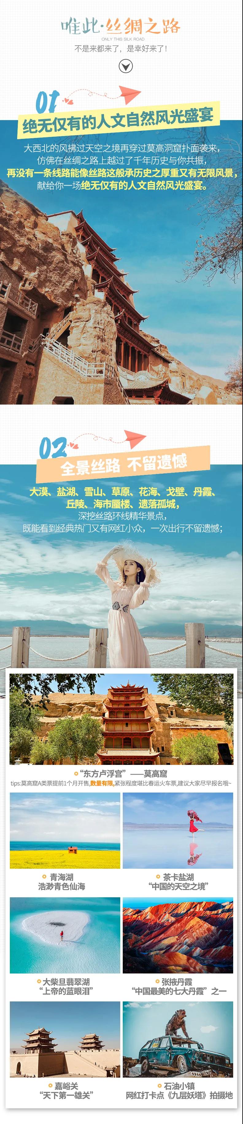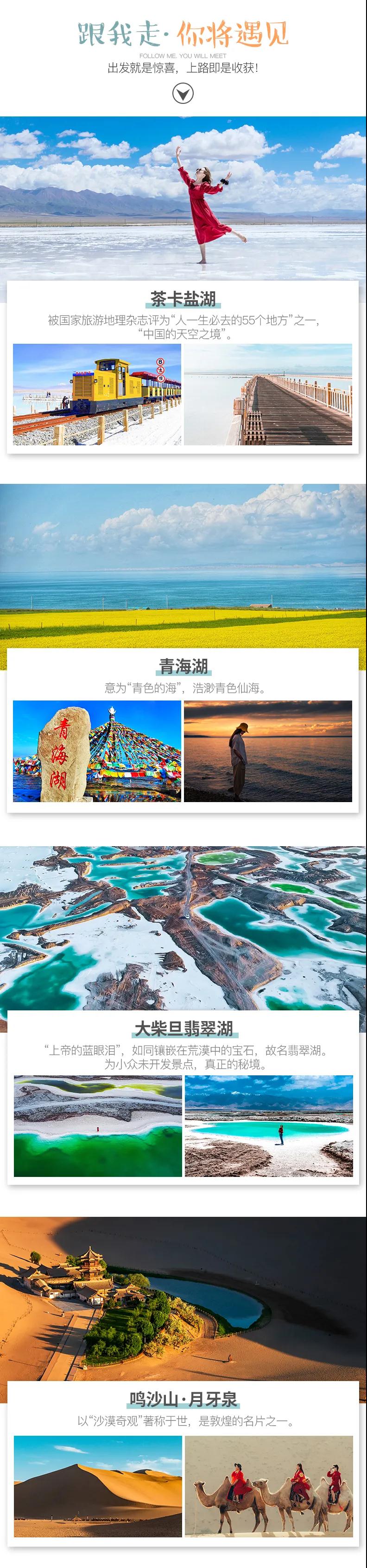 青海湖+茶卡鹽湖+莫高窟+大柴旦翡翠湖+張掖七彩丹霞+鳴沙山月牙泉+嘉峪關+九層妖塔石油小鎮(zhèn)經典絲路