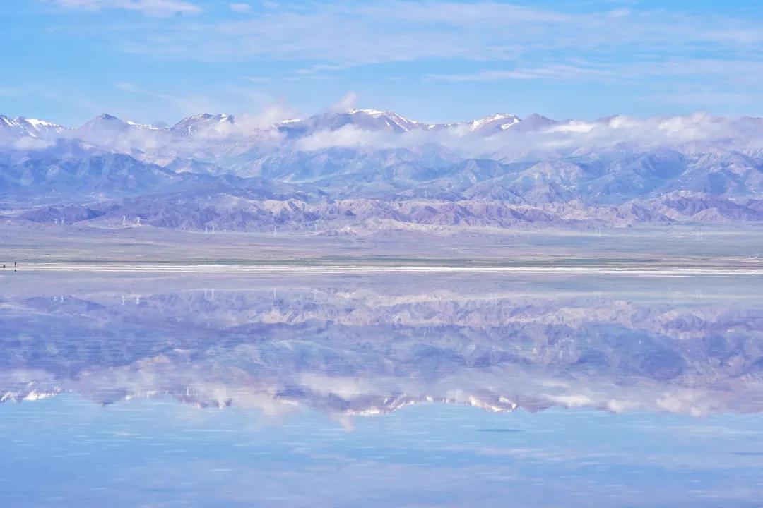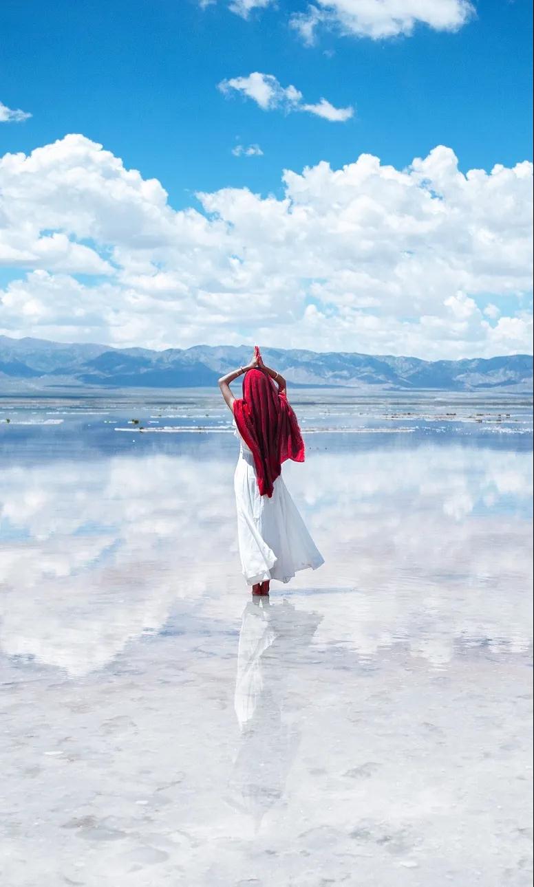 茶卡鹽湖被國家旅游地理雜志評為“人一生必去的55個地方”之一,這里的采鹽歷史非常悠久,湖水含鹽量很大,湖面上會自然結晶,一片純白。結晶之上是一層薄薄的露水,將天空、云朵和對岸的山都倒映在白色的湖里,非常漂亮,所以也被稱為“中國的天空之境”。大家可以乘坐景區(qū)內的小火車前往景區(qū)深處游玩,如果不乘坐小火車,沿著鐵軌向湖深處散散步拍拍照片也是非常愜意的。