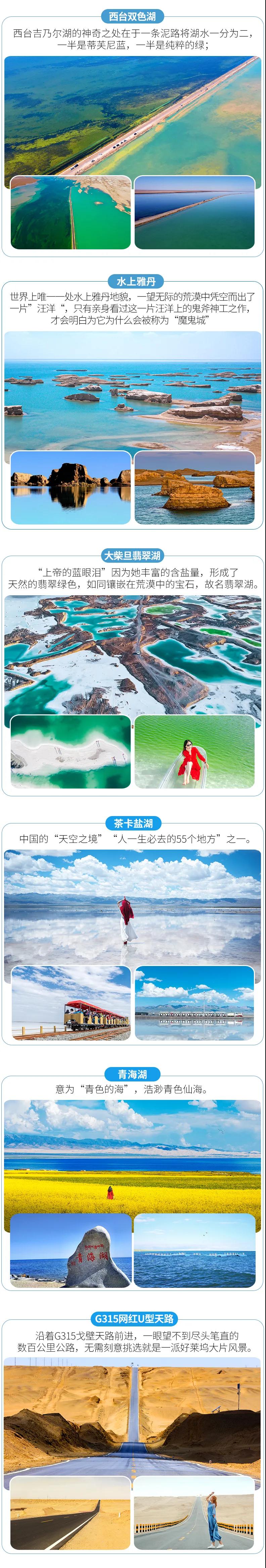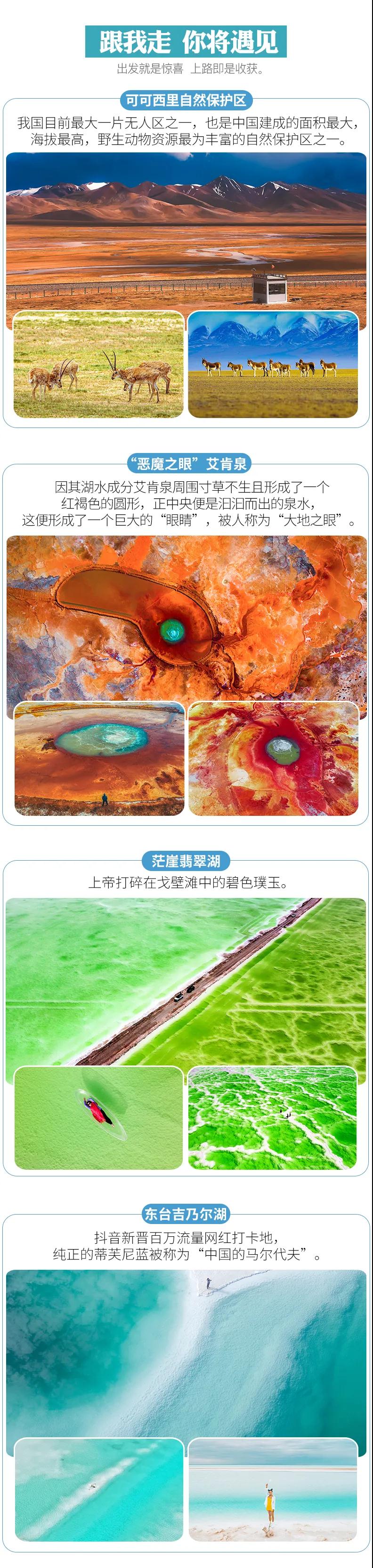 可可西里+艾肯泉+青海湖+茶卡鹽湖+茫崖+大柴旦翡翠湖+西臺雙色湖+東臺吉乃爾湖+水上雅丹+G315天路