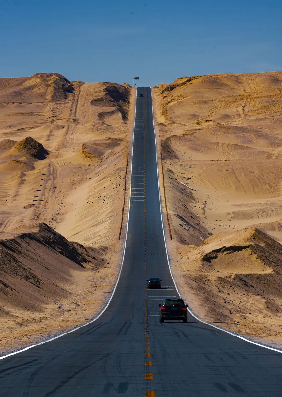 車子繼續向前行進,我們來到不遠處的沿著G315戈壁天路駛向大柴旦,一眼望不到盡頭筆直的數百公里公路,這里已經成了網紅U型公路打卡點,無需刻意挑選就是一派好萊塢大片風景,野性的路野性的起伏野性的自己,在這條路上你可以盡情感受公路旅行的自由。