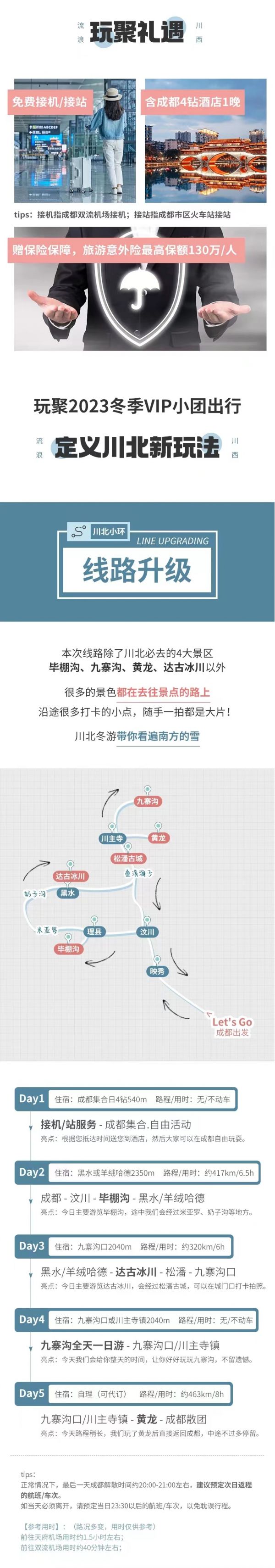 D5九寨溝口/川主寺鎮(zhèn) - 黃龍風景區(qū) - 成都散團行駛里程:463km 行車時間:約8小時
