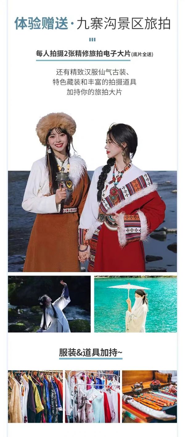 4、九寨溝景區(qū)實行分區(qū)域開放,開放區(qū)域為溝口經(jīng)諾日朗瀑布至長海,扎如溝的扎如寺及日則溝的鏡海;其中,長海、五彩池、鏡海、諾日朗瀑布、樹正群海、雙龍海瀑布、扎如寺等景觀原則上為步行游覽區(qū),具體游覽方式請聽從隨車講解員安排。