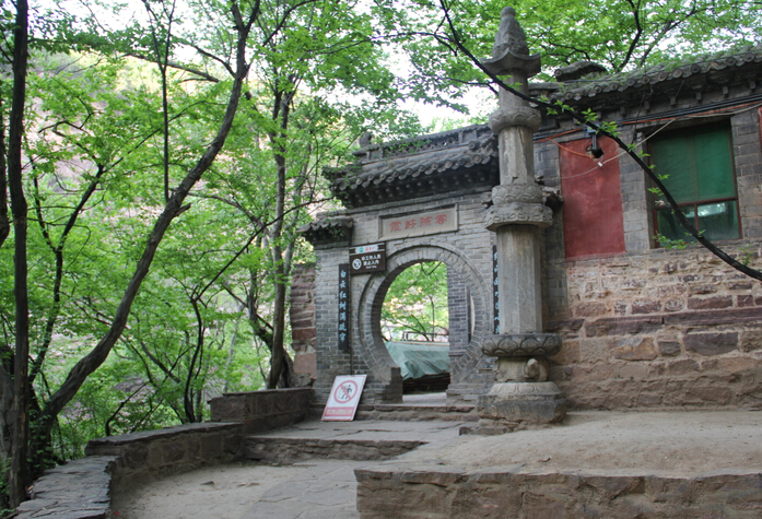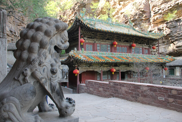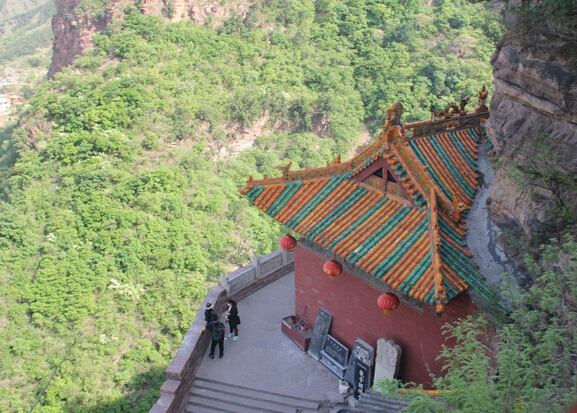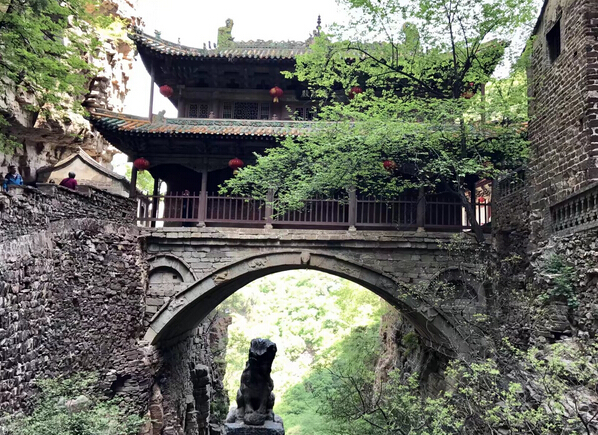 一絕“橋樓殿”。橋凌駕于百仞峭壁之間,仰視藍天一線,俯首萬丈深淵。形制如同趙州橋敞肩拱式。橋上建樓,云飛樓動,樓內建殿,殿內三尊大佛。真是“千丈虹橋望入微,天光云彩共樓飛”,不是仙境勝似仙境,疑是天堂落塵埃。現為中國三大懸空寺之一。