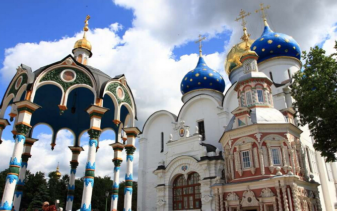 早餐后乘車前往宗教圣地-謝爾蓋耶夫鎮,謝爾蓋耶夫鎮又名為扎戈爾斯克。莫斯科的衛星城市之一,位于市區東北71千米處。是一座風景如畫,建筑獨特的城市,也是俄羅斯金環城市之一。抵達后參觀謝爾蓋三圣大修道院是俄羅斯著名最古老的大修道院之一 ,亦譯特羅伊察修道院。1337年一個名叫謝爾蓋·拉多涅日斯基的僧侶在莫斯科近郊謝爾蓋耶夫(即今扎戈爾斯克)的偏僻森林里建立一座三圣小教堂和小道房,為該修道院的前身。后來凡愿在此出家的人,必須自造小道房并自辟膳食用地,由此發展而成為東北羅斯最富有的大修道院。1744年獲大修道院稱號,是東北羅斯古典建筑群的代表。修道院石墻高達15米,成為莫斯科北方重要防御據點。它擁有幾個世紀以來、歷經各個朝代改建和擴建的各種形式的教堂和附屬建筑群。包括三圣教堂、杜霍夫斯基降靈教堂、圣母升天教堂,教皇宮殿和斯摩棱斯克教堂(1748年),以及齋房、鐘樓、慈善醫院等。其中最著名的三圣教堂建于1423-1442年,是俄羅斯早期白石建筑藝術典范。在這里可以看到以畫《三位一體》而出名的俄羅斯畫家安德烈·魯布廖夫的壁畫作品等。