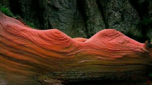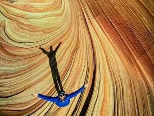 波浪谷是一種紅砂巖地貌,因巖砂上的紋路像波浪,被叫做"TheWave",即波浪。上世紀(jì)80年代,人們在美國亞利桑那州和猶他州交界處發(fā)現(xiàn)了波浪谷,神奇的外觀和極高的科研價值使其成為了世界八大巖石奇觀之一。而靖邊的波浪谷也有著與美國波浪谷媲美的紅砂巖峽谷。中國靖邊波浪谷和美國波浪谷的差距并不大,都是紅砂巖地貌,靖邊波浪谷更加年輕,只有6000萬年,很多砂土還沒來得及凝固為巖石,地處黃土高原與毛烏素沙漠交匯地帶的靖邊縣龍州鄉(xiāng)。