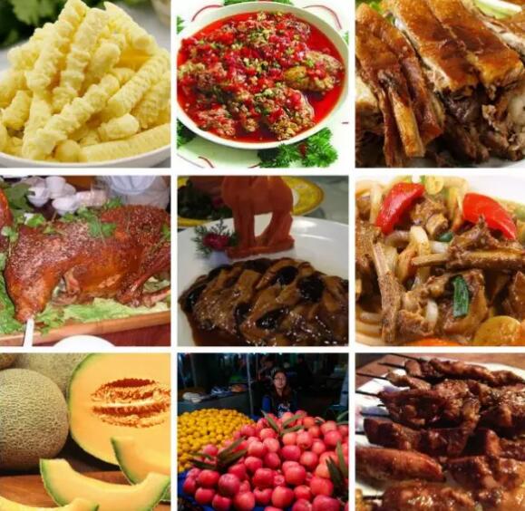 當地實力推薦:燒烤大全、紅燒骨頭,還有各種燴菜、排骨燴酸菜、醬駱駝肉、蒙古包子、手抓羊肉、炒羊雜、血腸、奶豆腐、酪丹子、拔絲奶皮、西涼啤酒、居延密瓜、當地西瓜。特色菜有手扒羊肉、黃燜羊肉、醬駱駝肉等。