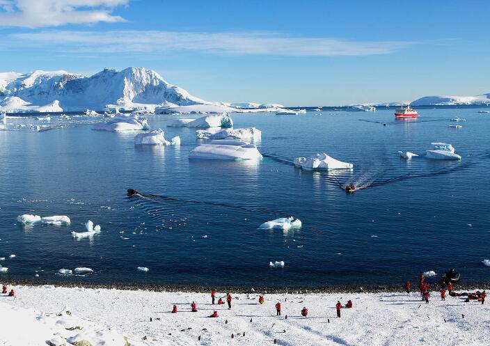 橫越德雷克海峽之后,“南極到了”!我們將視天氣和冰面的情況而調整行程,乘坐極地“沖鋒舟”穿梭重重冰山,登陸南極半島最富盛名的幾個小島。期間,您可以參觀企鵝聚集地,觀賞海豹、海象及海鳥等動物,也可行走在夢幻的南極大陸。