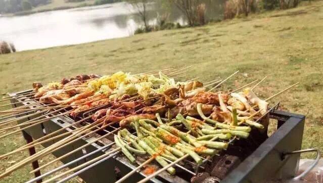 晚餐在景區用戶外燒烤,戶外燒烤呼朋喚友、溝通感情和享受大自然,自己動手在燒烤肉類或魚類前,最好先用調味料腌漬,否則即使多加燒烤醬,味道也只是停留在表面,本身的香氣就已經很誘人了,灑上椒鹽孜然,味道就更美了。