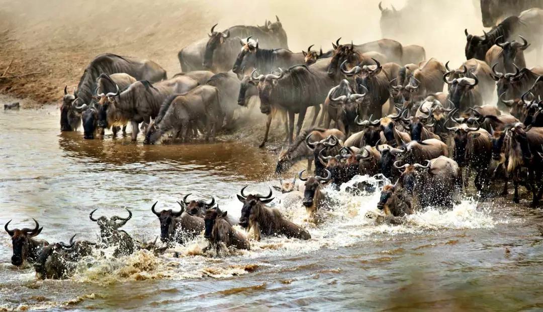 每年7月至8月將迎來角馬大遷徙,數(shù)百萬只角馬長途跋涉尋找新的牧場。百萬角馬穿越大草原,浩浩蕩蕩壯觀的場面。即便前方有獅子、獵豹、鱷魚的伏擊,即便前方有湍急的河流阻礙,即便伙伴雜沓的腳步足以致命,角馬們依然義無返顧、勇往,聚眾涉水遷徙。這是這個(gè)地球上最悲壯、最血腥的動物大遷徙……