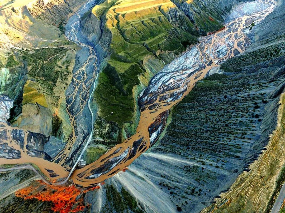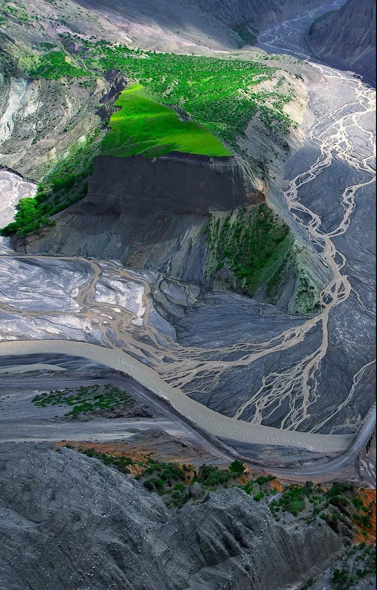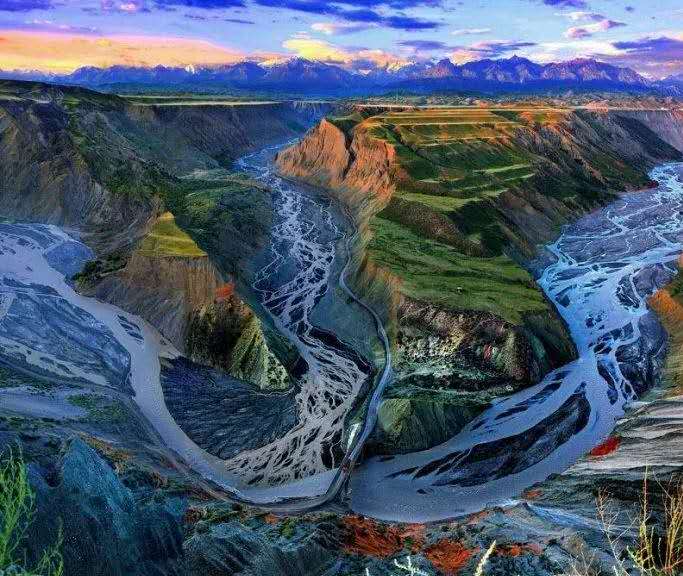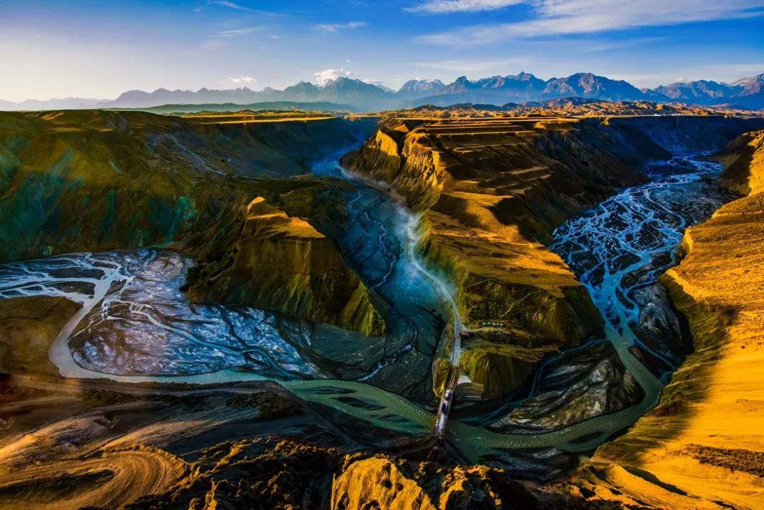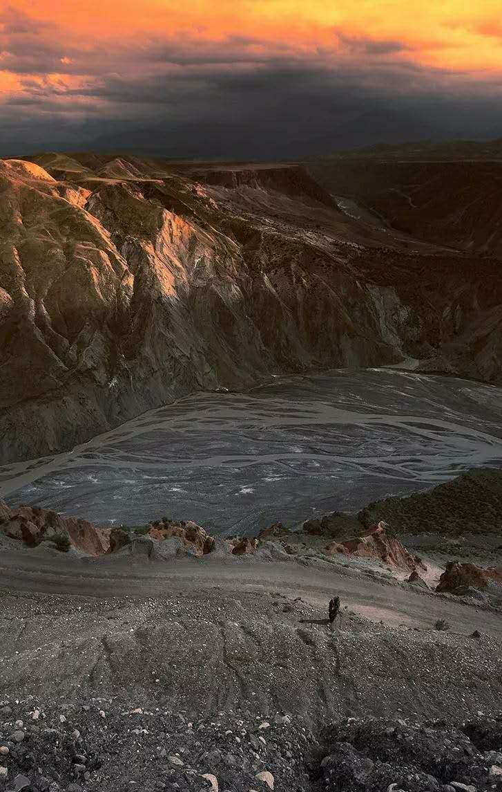 鮮為人知的安集海峽谷,其實(shí)有著令人目眩、剛?cè)岵?jì)的壯美景觀:峽谷兩側(cè)是從上到下依次排開的河流階地,宛如波濤洶涌的海浪一樣撲面而來,充分顯示了峽谷陽剛的一面。而河谷里蜿蜒流淌的辮狀河流,千轉(zhuǎn)百回,在纏綿低語中將峽谷柔情的一面展露無遺。這條峽谷還以豐富的色彩而令人感到嘆為觀止。