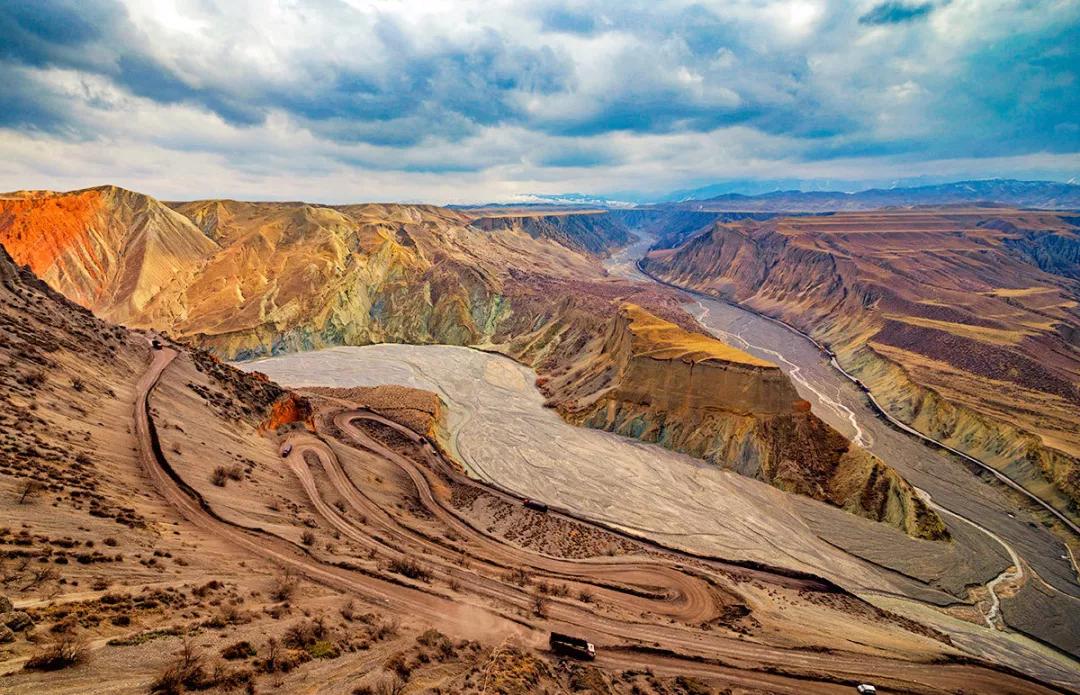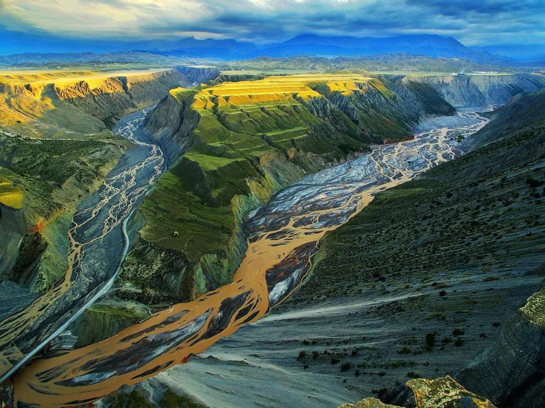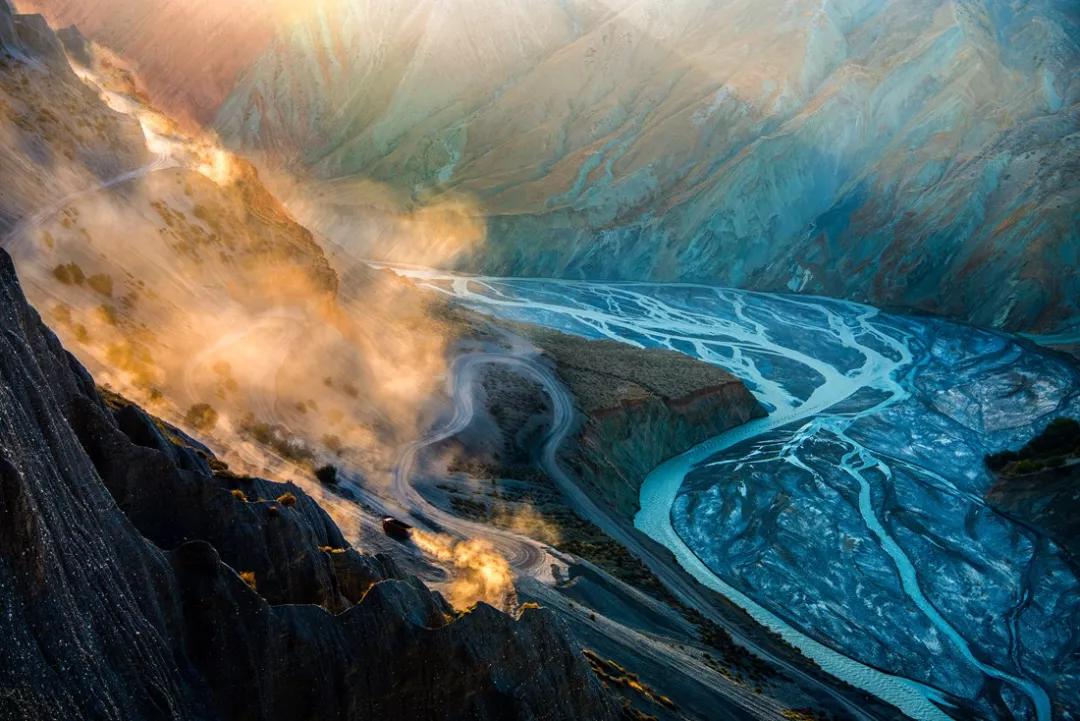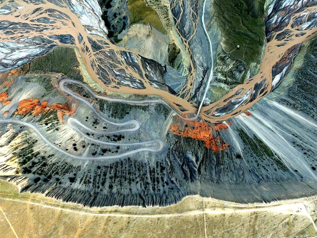 鮮為人知的安集海峽谷,其實(shí)有著令人目眩、剛?cè)岵?jì)的壯美景觀:峽谷兩側(cè)是從上到下依次排開的河流階地,宛如波濤洶涌的海浪一樣撲面而來,充分顯示了峽谷陽剛的一面。而河谷里蜿蜒流淌的辮狀河流,千轉(zhuǎn)百回,在纏綿低語中將峽谷柔情的一面展露無遺。這條峽谷還以豐富的色彩而令人感到嘆為觀止。