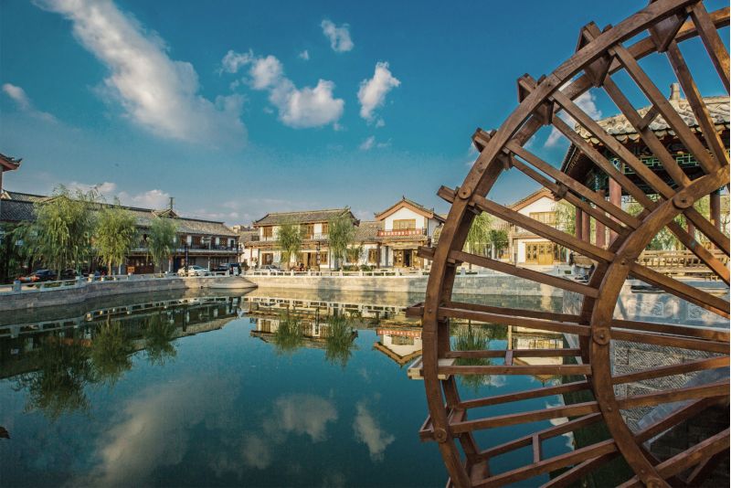 【廟會廣場】是展示宗教文化和地方市井文化的場所。廣場上建有春秋圣殿、城隍廟、古戲臺。春秋圣殿展示發(fā)源于春秋時期的諸子百家思想文化;城隍廟是人們求財保平安的場所;古戲臺是演出地方戲曲和地方歌舞的場所。