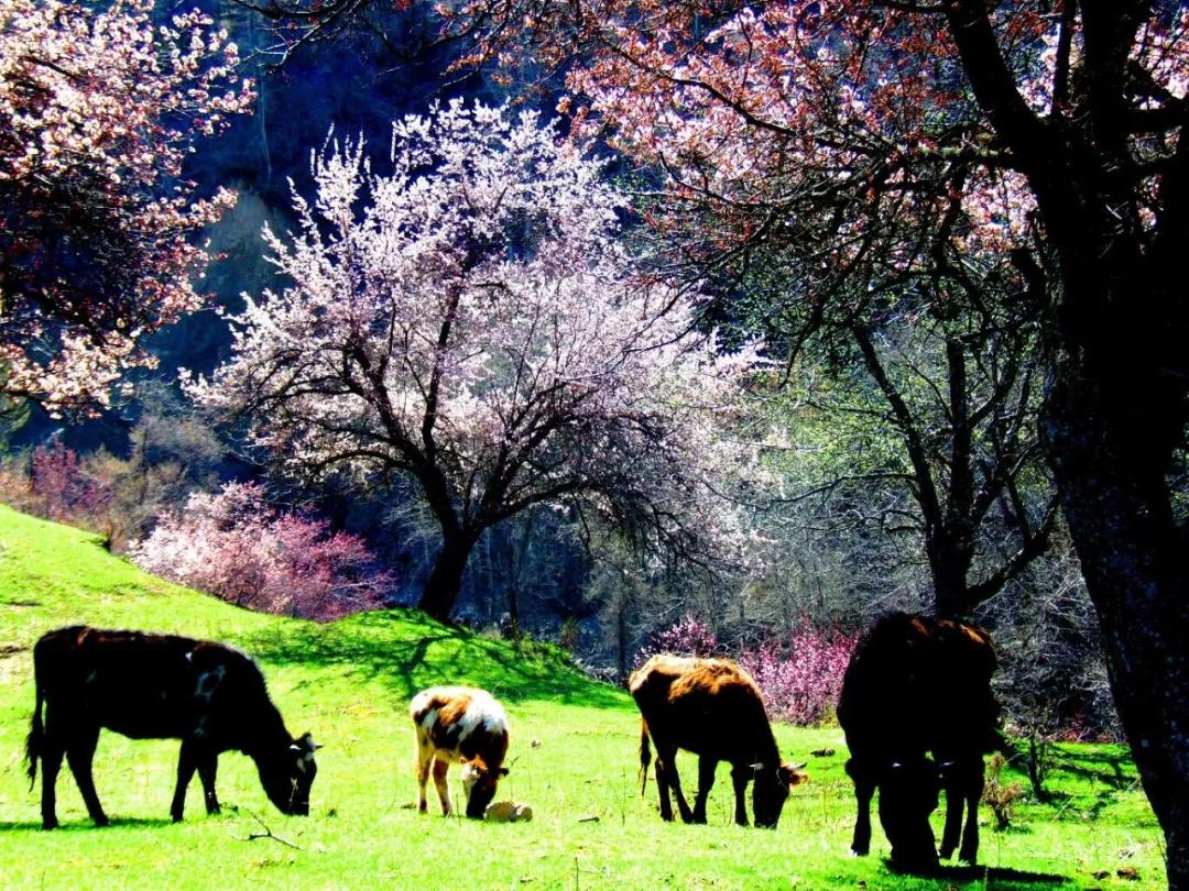 僅杏花而言,入春的伊犁河谷就像是一條分布長達300多公里的杏花景觀長廊。因海拔差異,這些杏花開放時間并不一致,伊寧縣杏花節過后,吐爾根野杏林、福壽山野生酸梅花、天山紅花次第開放,各領風騷,讓游客沉醉其中。