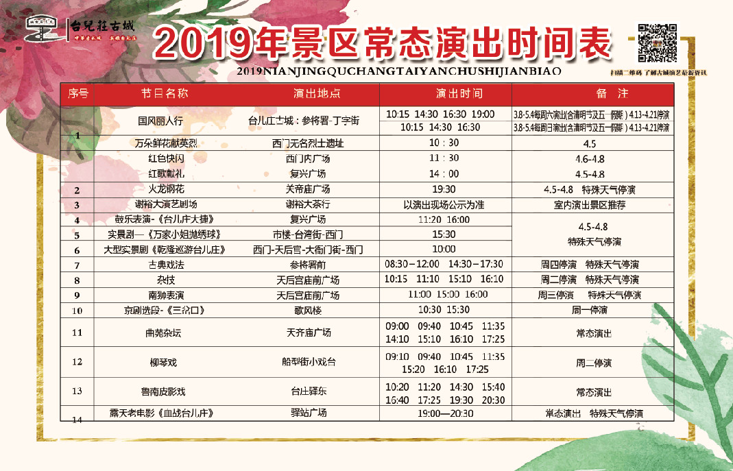 早晨6:00點東昌路沿線集合出發,第一站早6:00鳳凰臺西南角中國人壽門口;第二站6:10分金鼎商廈紅綠燈東站牌;第三站6:15分大潤發超市;第四站6:25分當代購物中心站牌;集合后前往臺兒莊古城,中午12:30分左右抵達,午餐后進入臺兒莊古城,安排古城內客棧住宿;下午進行古裝主題模特拍攝,晚上古城夜景拍攝,晚餐古城內自理。