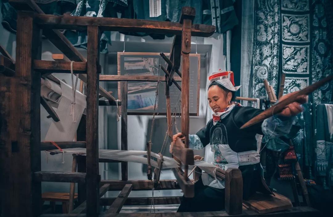 藍的像天,白的像云,布上的紋樣,是湘西的靈動和神秘。