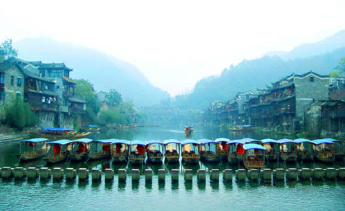 沱江,古城鳳凰的母親河,依城墻緩緩流淌,哺育著世世代代的古城兒女。坐上烏篷船,聽著艄公的號子,看著兩岸已有百年歷史的土家吊腳樓,別有一番韻味。順水而下,穿過虹橋,一幅江南水鄉的畫卷便展現于眼前,遠離塵世的感覺悠然而生。