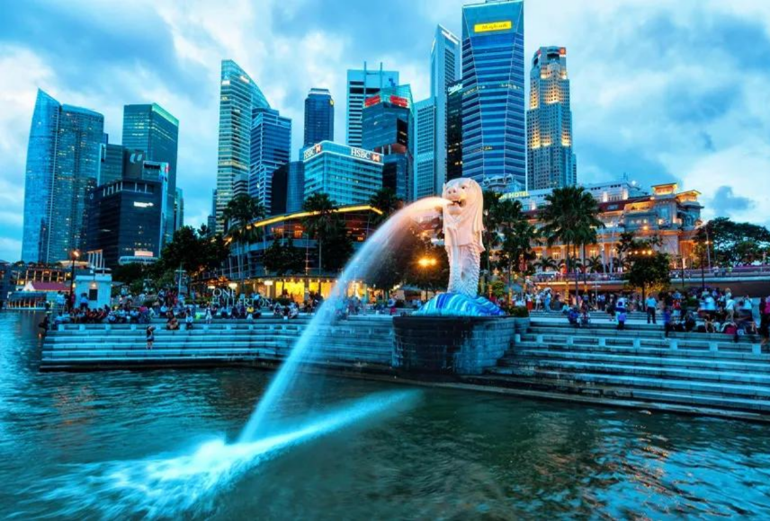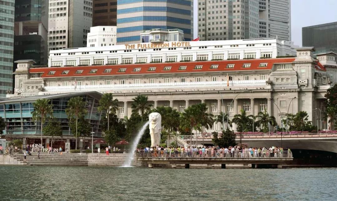 新加坡富麗敦酒店就在魚尾獅公園后面