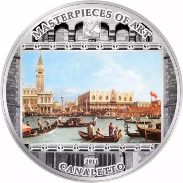 2011年,庫克發行了世界名畫系列中的《威尼斯大運河風景》20庫克元鑲嵌水晶精制彩色紀念銀幣。銀幣正面圖案取材于意大利畫家卡納萊托的著名風景畫《威尼斯大運河風景》。