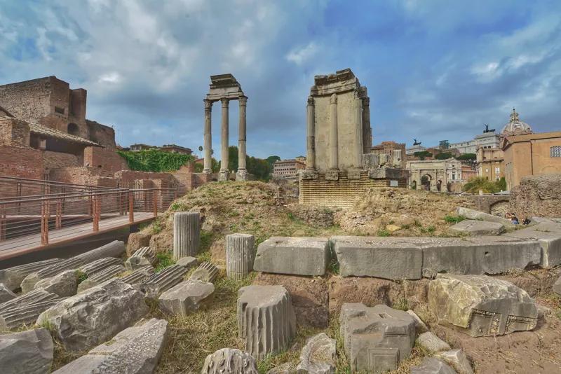圍繞著這座廣場,遍布著神殿、元老院、會議堂、凱旋門,以及重要歷史人物曾經(jīng)生活和死去的遺跡。