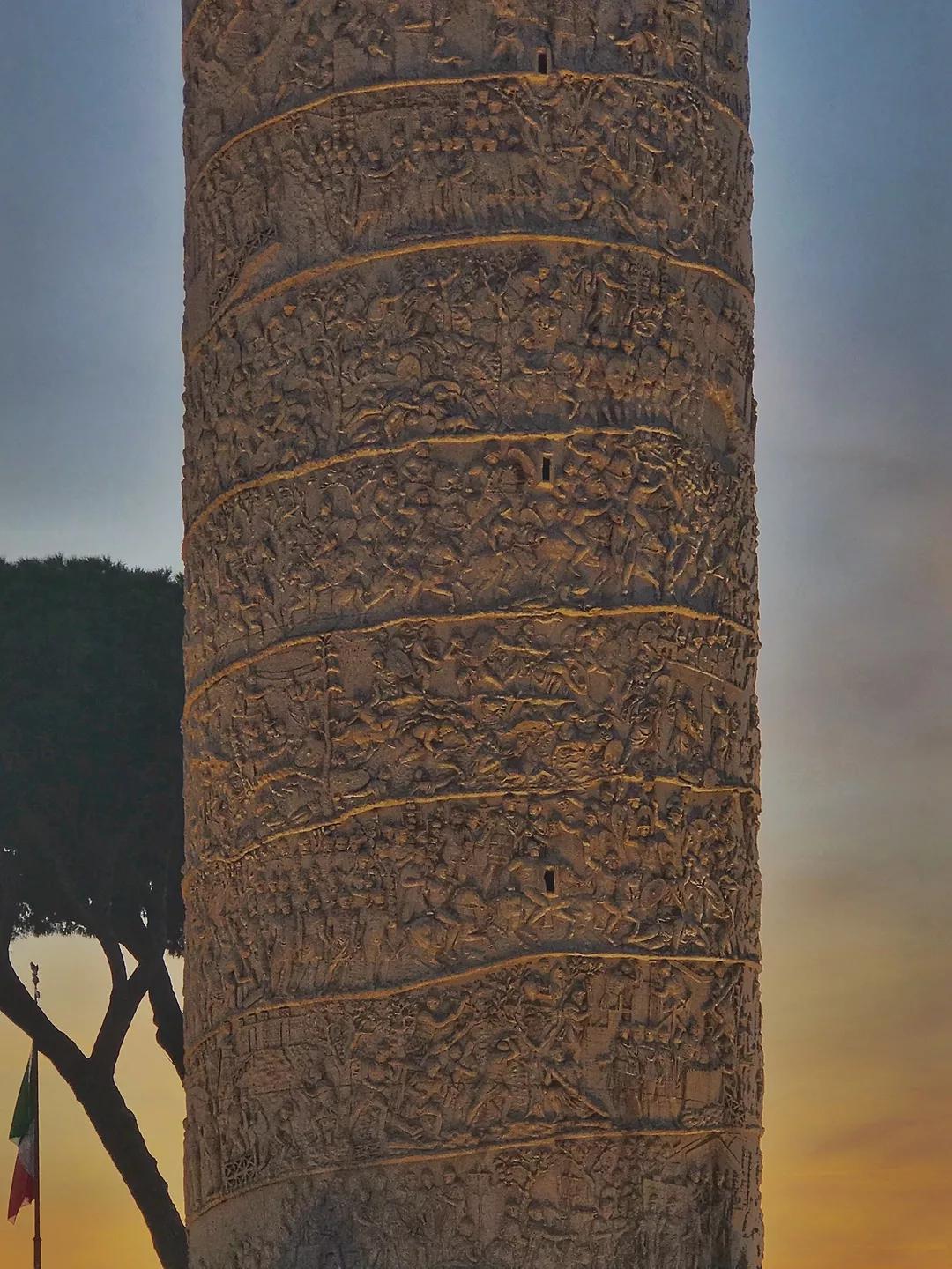 這是一條盤旋上升的石柱,石柱外立面用大理石雕刻著圖拉真的豐功偉績,雕工的精細和奇特的設計令人贊嘆,你也許要拿著望遠鏡繞著柱子轉(zhuǎn)上無數(shù)圈,才能讀完這位偉大帝王的一生。