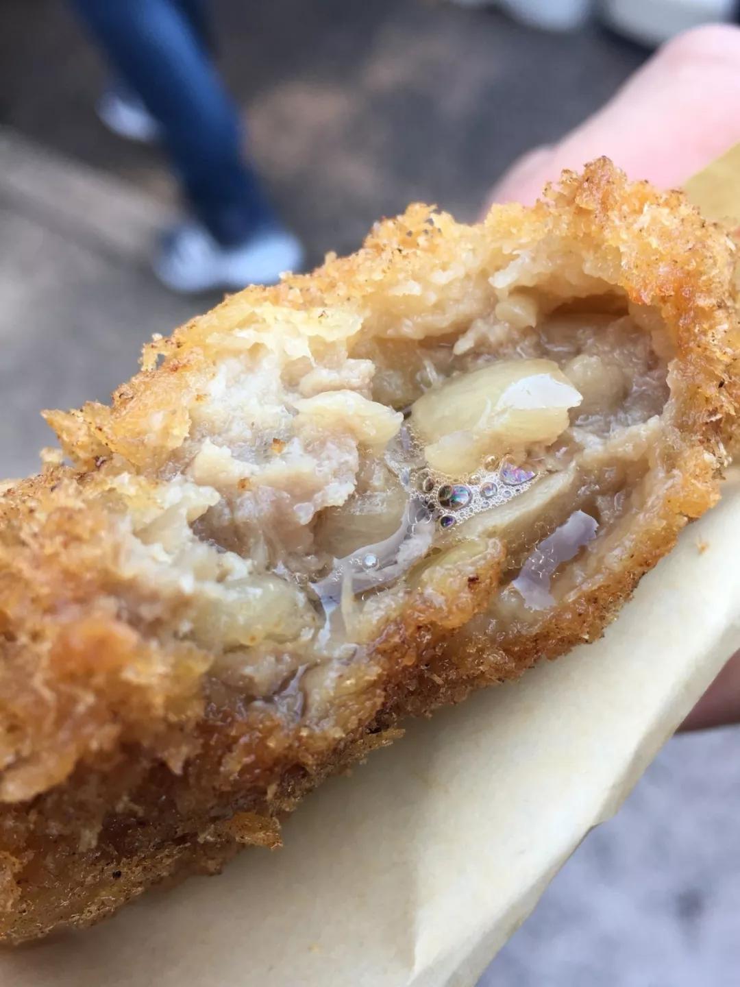 在淺草,各種便宜又美味的日式小吃自然是不容錯(cuò)過(guò),這家淺草炸肉餅就非常值得一試,口感外脆里嫩、內(nèi)餡使用了神奈川縣產(chǎn)的高座豬與牛肉。先能感受到炸到酥脆咔嚓咔嚓的外殼,然后便是里邊又香又嫩又多汁的牛肉了。