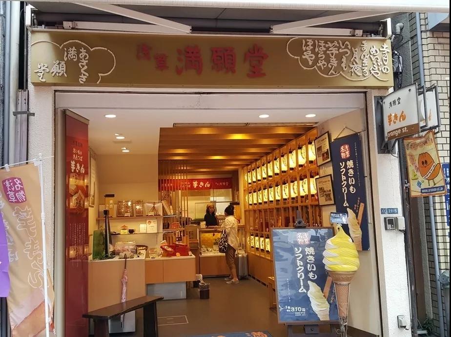 淺草滿愿堂是淺草一家有口皆碑的售賣(mài)芋金的人氣店鋪,招牌和菓子芋金是以九州薩摩紅薯為原料烘焙制成的。