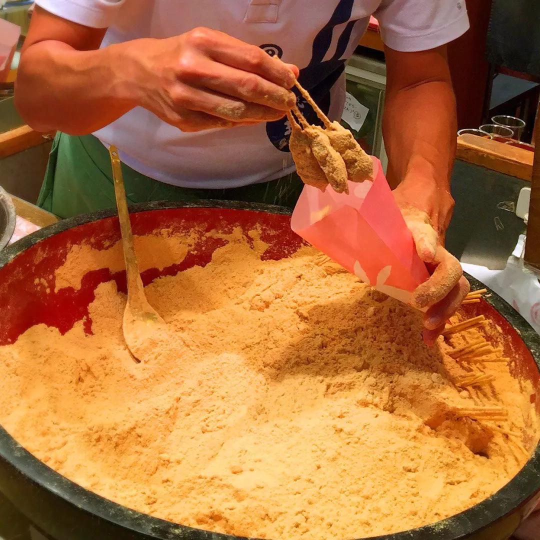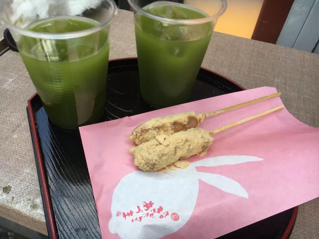 這家店每天營(yíng)業(yè)時(shí)都是大排長(zhǎng)龍,剛煮好的團(tuán)子軟軟的 富有彈性的團(tuán)子沾上香甜的黃粉,是不可錯(cuò)過(guò)的淺草美食之一。再配上也一杯冰抹茶最合適不過(guò)了!店里還提供夏季抹茶和冬季甘酒等飲品,非常值得一嘗。