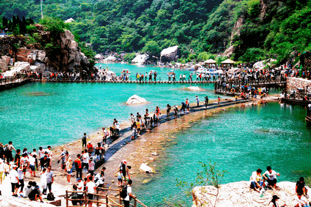 1、寶泉的水,風平浪靜時,像一顆深綠色的寶石鑲嵌在大地上,微風吹過,泛起一道道美麗的浪花,嫵媚動人;