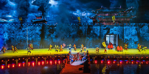 觀賞世界首家頂級環繞室內實景舞臺秀,進入三萬平方超大演藝劇場,乘坐會跑的觀眾看臺,打破了五千年來單一的舞臺觀演模式,欣賞真山真水演出;